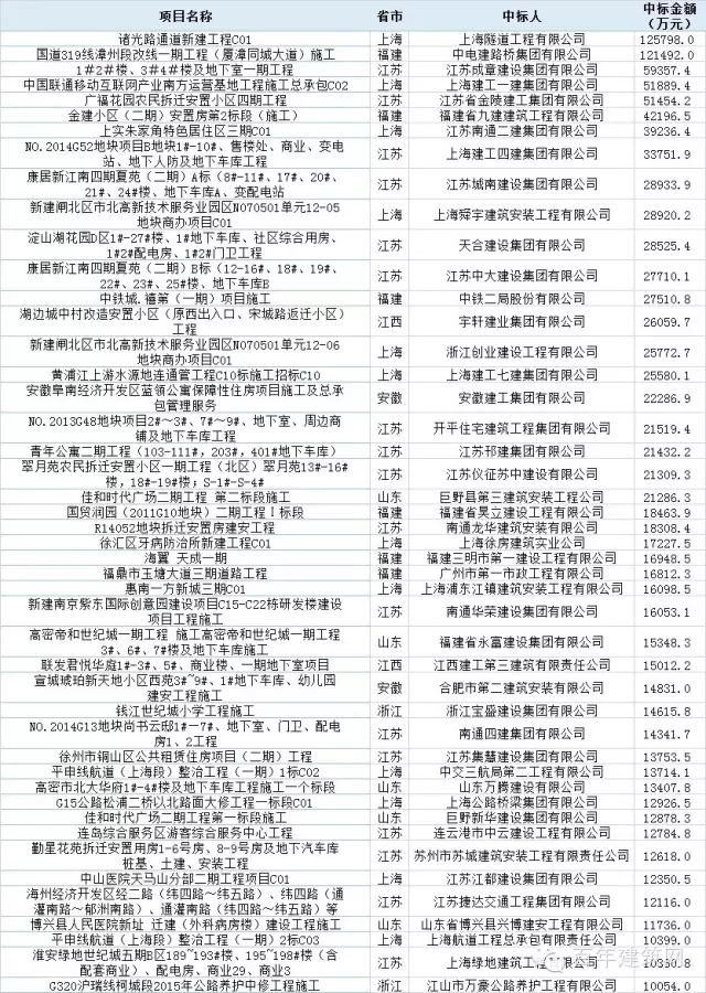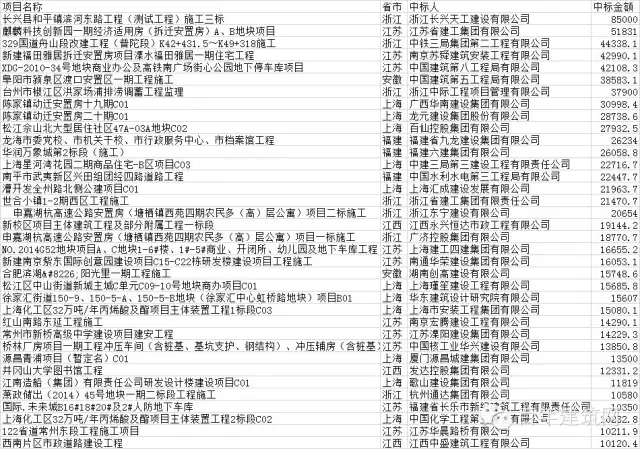 本周华东地区亿元以上施工中标项目一览