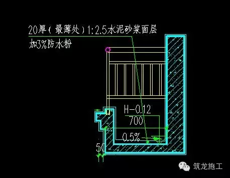 预防措施:单层空调板防水施工找坡到位,无积水。做防水后再做砂浆找坡保护层
