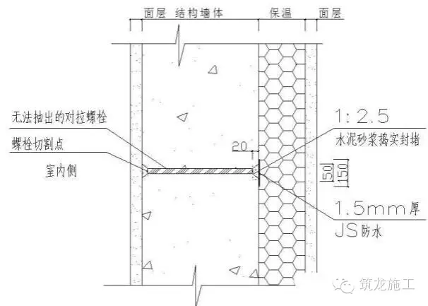 预防措施:外窗对拉螺杆部位使用水泥砂浆封堵后涂刷JS防水涂料