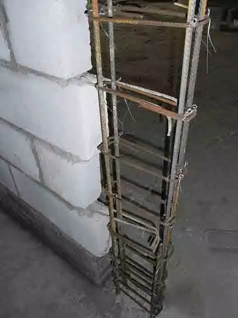 构造柱钢筋搭接未绑扎,且在箍筋外
