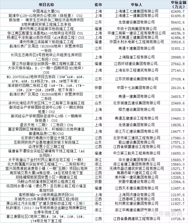 本周华东地区亿元以上施工中标项目一览