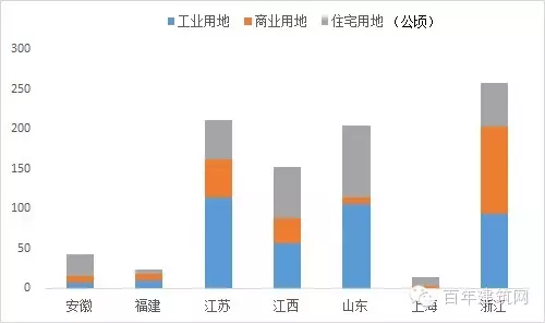 据百年建筑网监测数据显示,从成交面积来看,本期华东地区共成交经营性土地903.24公顷,其中工业用地土地成交面积386.17公顷,商业用地成交面积217.27公顷,住宅用地土地成交面积299.80公顷。