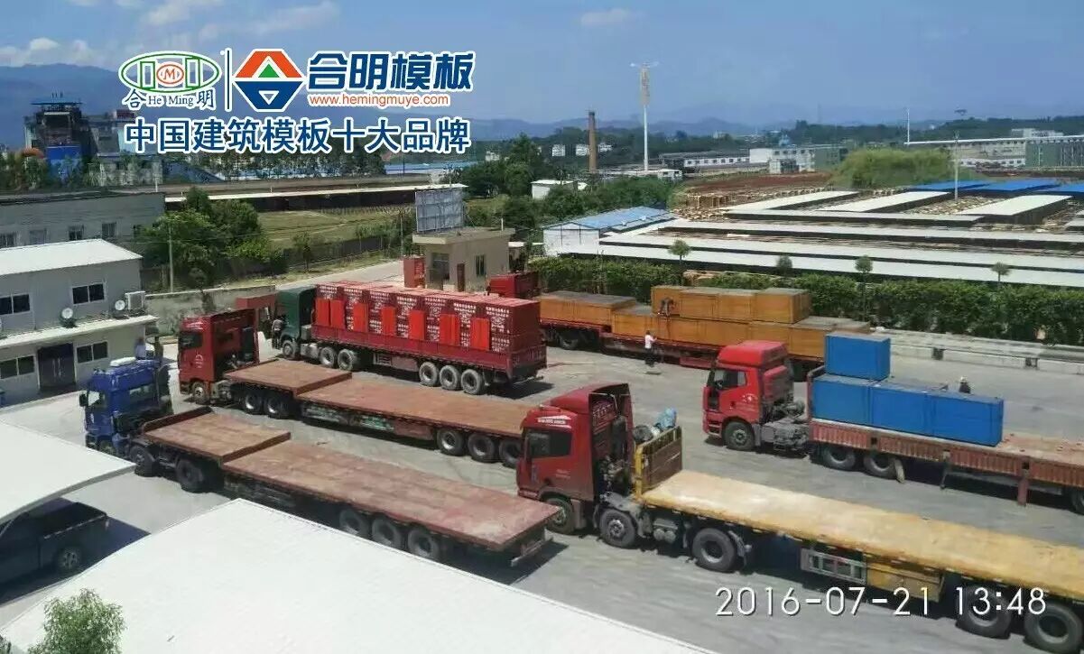 合明木业讯  昨日,合明产业园一片热火朝天,37度高温下,合明模板迎来了25车的发货高峰,共计70000张建筑模板,这是继今年3月7日发货29车后,又一个日发车量超20车的发货记录,在福建省内屈指可数,合明模板不愧是福建省最大建筑模板企业。