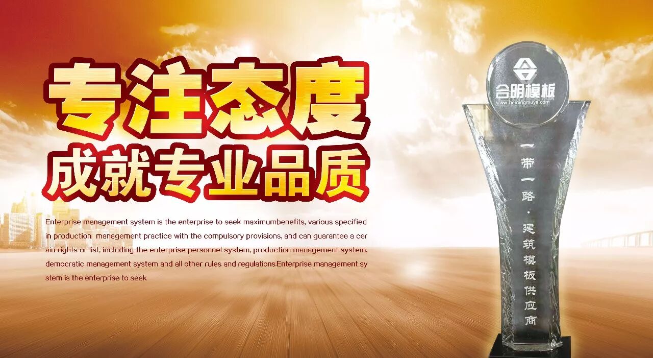 合明旗下拥有营销中心、国际事业部、物流园、原木贸易公司、原木旋切厂、晒板场、胶水厂、方木加工厂等建筑模板生产附属机构,踏实稳步经营,合明模板通过ISO三大国际体系认证,连续多年获得纳税大户称号、中国建筑模板十大品牌、福建省著名品牌、漳州市知名品牌、守合同重信用单位等等官方和行业几十项认证荣誉。”