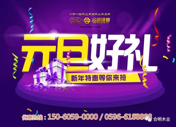 针对年前的生产发货小高潮,合明推出了一系列建筑模板元旦优惠回馈活动,活动时间1月1日-15日,目前还在活动中。优惠力度大,时间有限,请抓紧与客服人员联系!