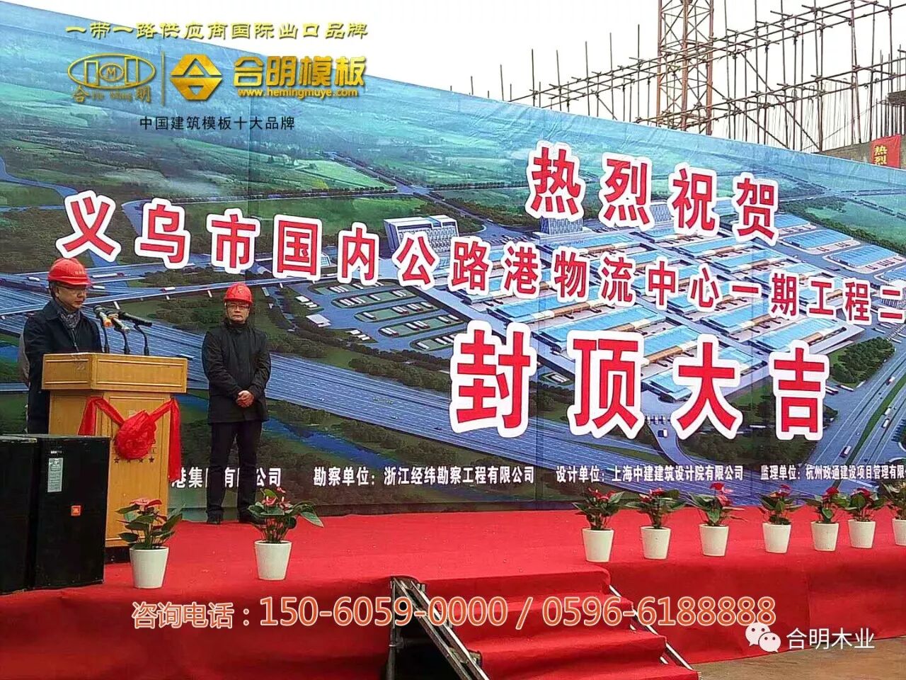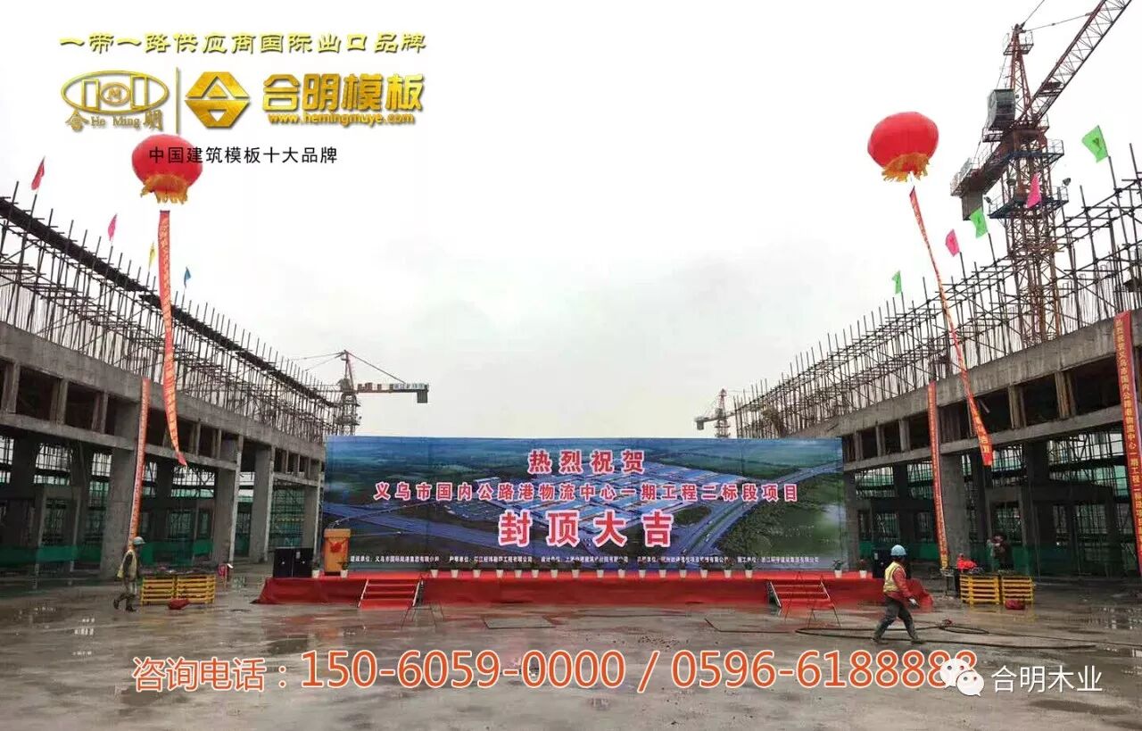 近日,浙江省义乌市国内公路港物流中心一期工程封顶!合明建筑模板作为本项目指定使用建筑材料,与浙江环宇建设和中天建设两家承建集团,共同见证了该工程的圆满落成!