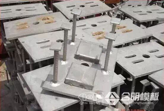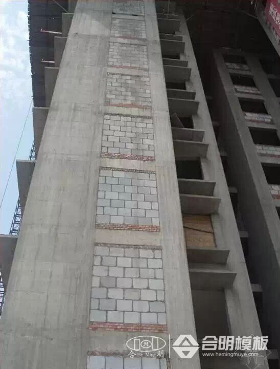 外墙上下层接缝处预留模板加固连接件,使其接缝严密。