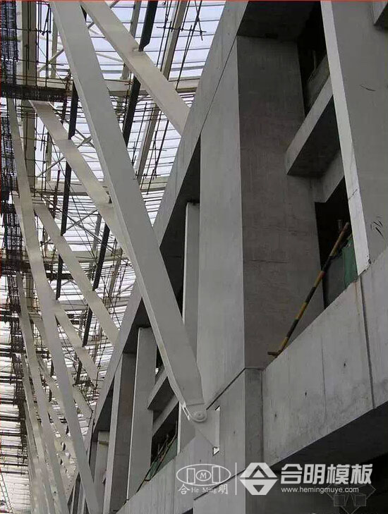 柱墙模板采用高强螺杆进行加固,确保柱墙断面准确。